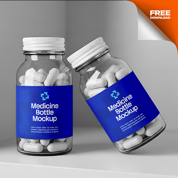 Free Two Bottle Medicine Mockup