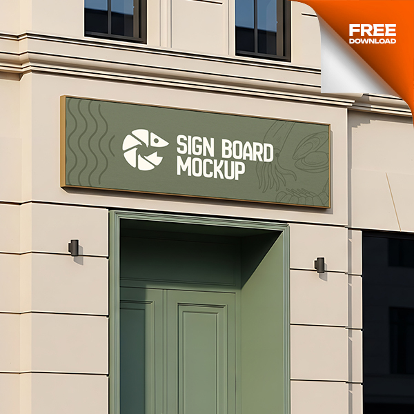 Free Sign Board Seafood Restaurant Mockup