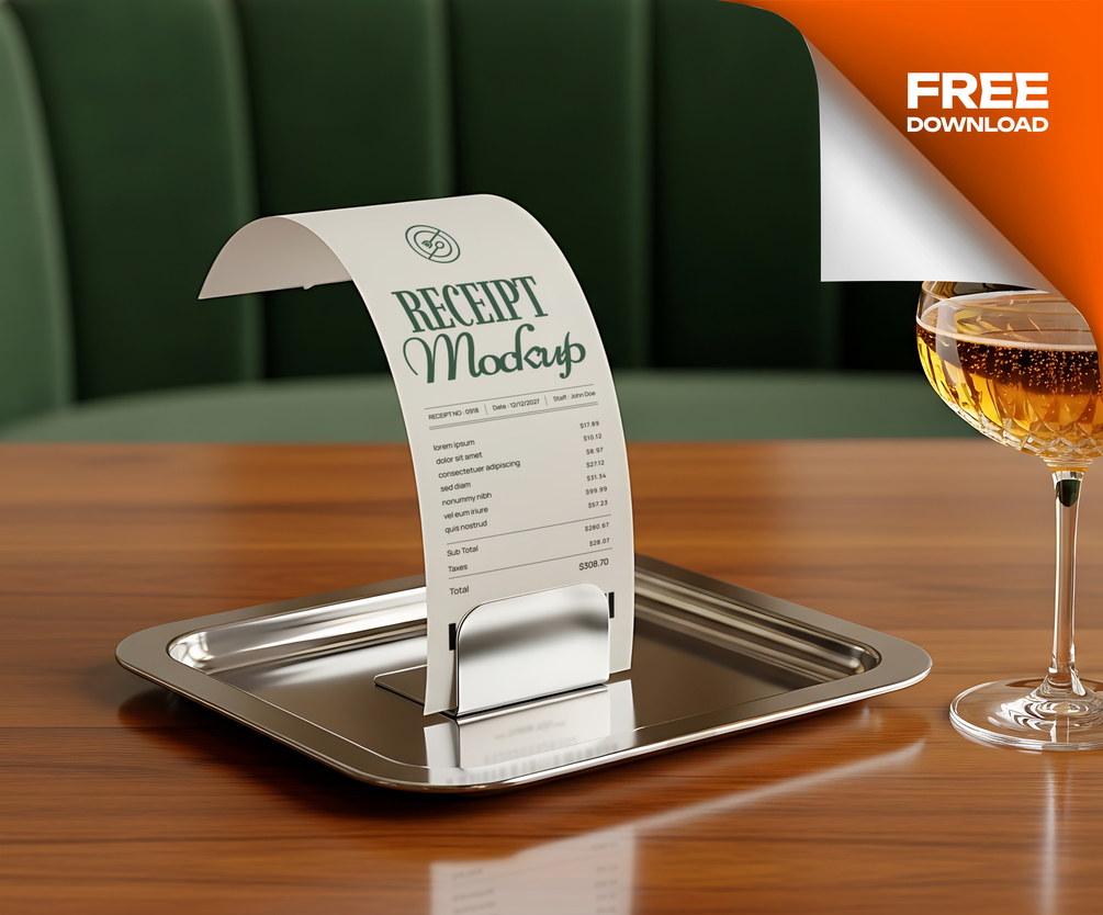 It's time to take your project to the next level! With our Free Receipt Steak Resto Mockup your graphic projects will get a unique and professional look. Download this Mockup today and get an edge over the competition. have a great day!