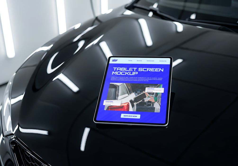 Premium Electric Vehicle Garage Mockup - 15 PSD File